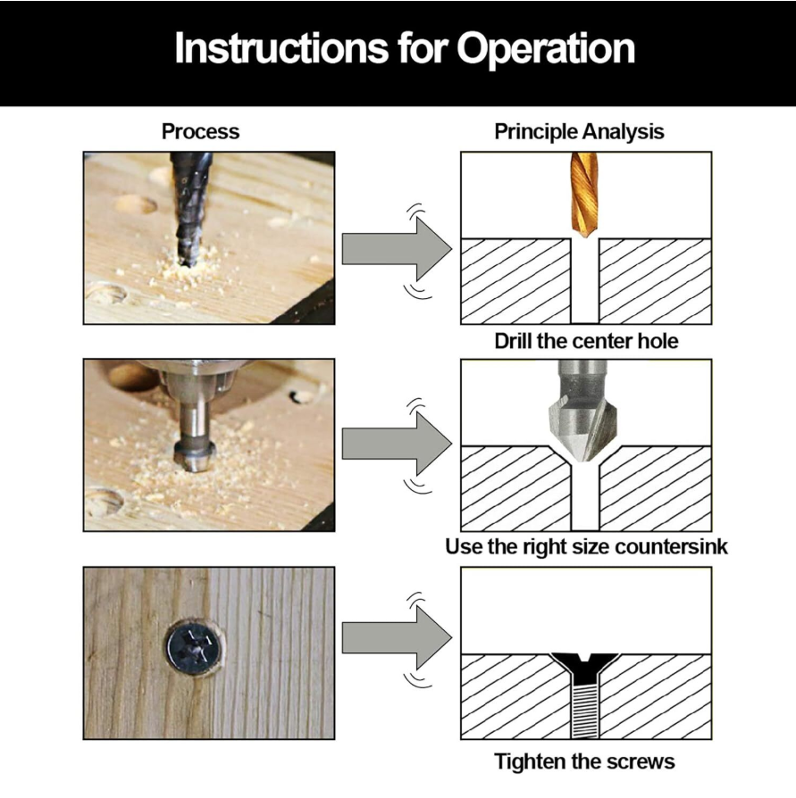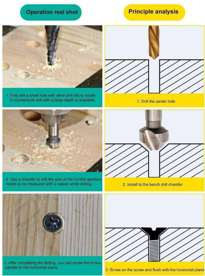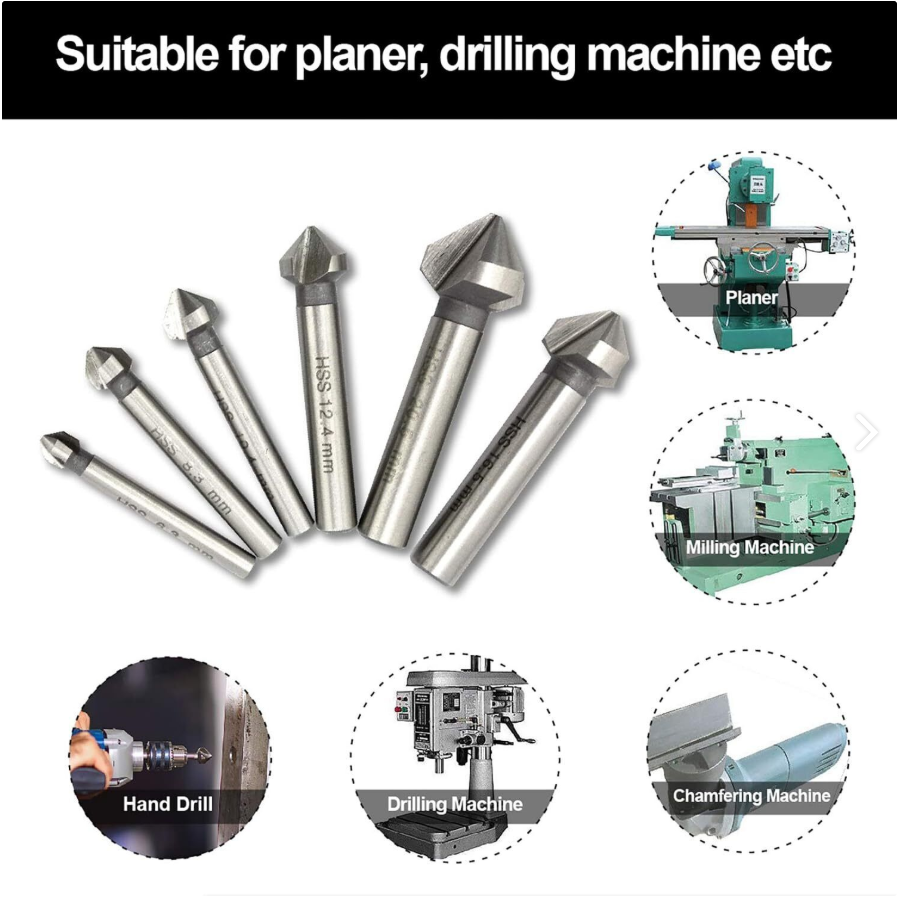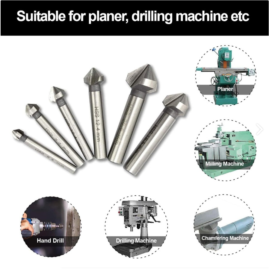 6 Stk Kegelsenker Set Holz Metall HSS 90° 6.3-20.5 mm Set